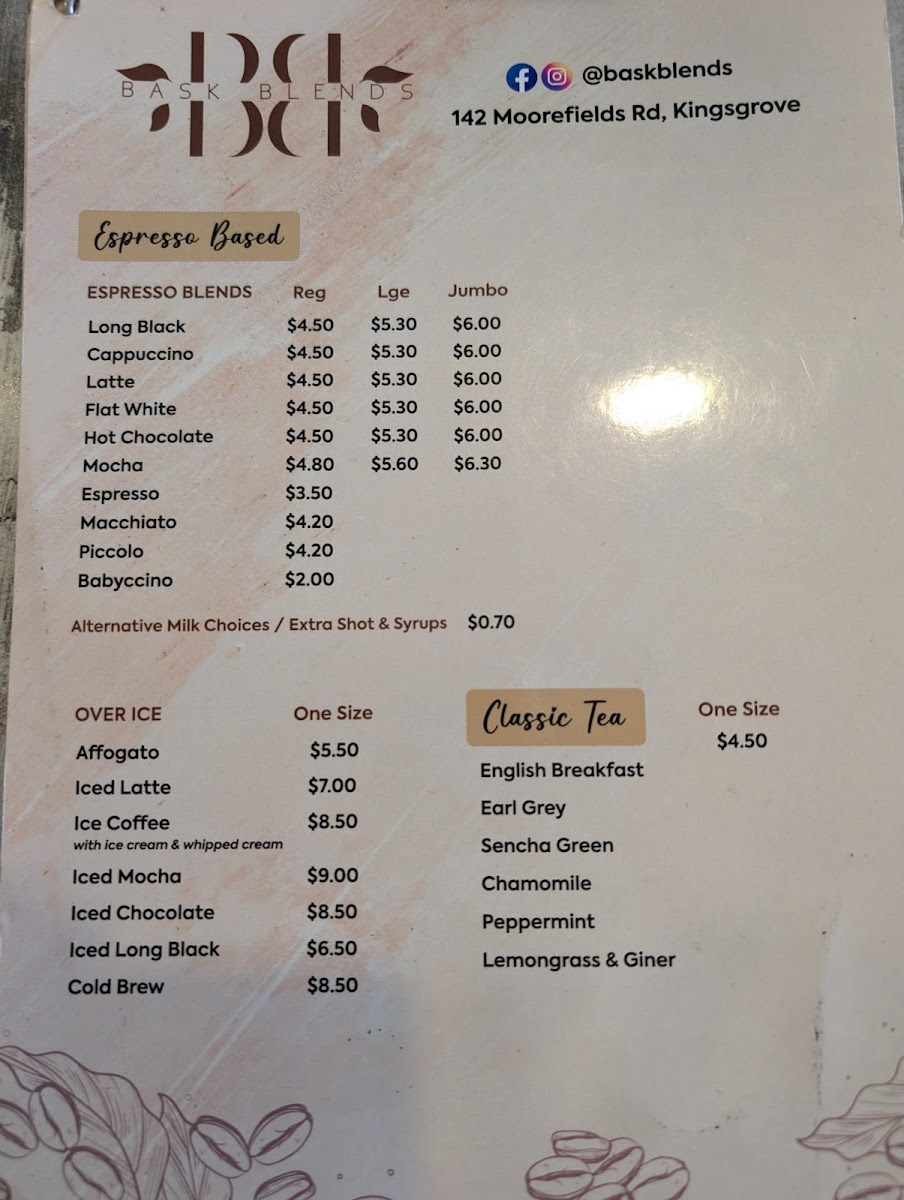 Welcome to Bask Blends Café, located at 142 Moorefields Rd, Kingsgrove, where culinary creativity meets vibrant café culture. This delightful spot boasts an enticing menu that celebrates all-day dining, perfect for every palate.